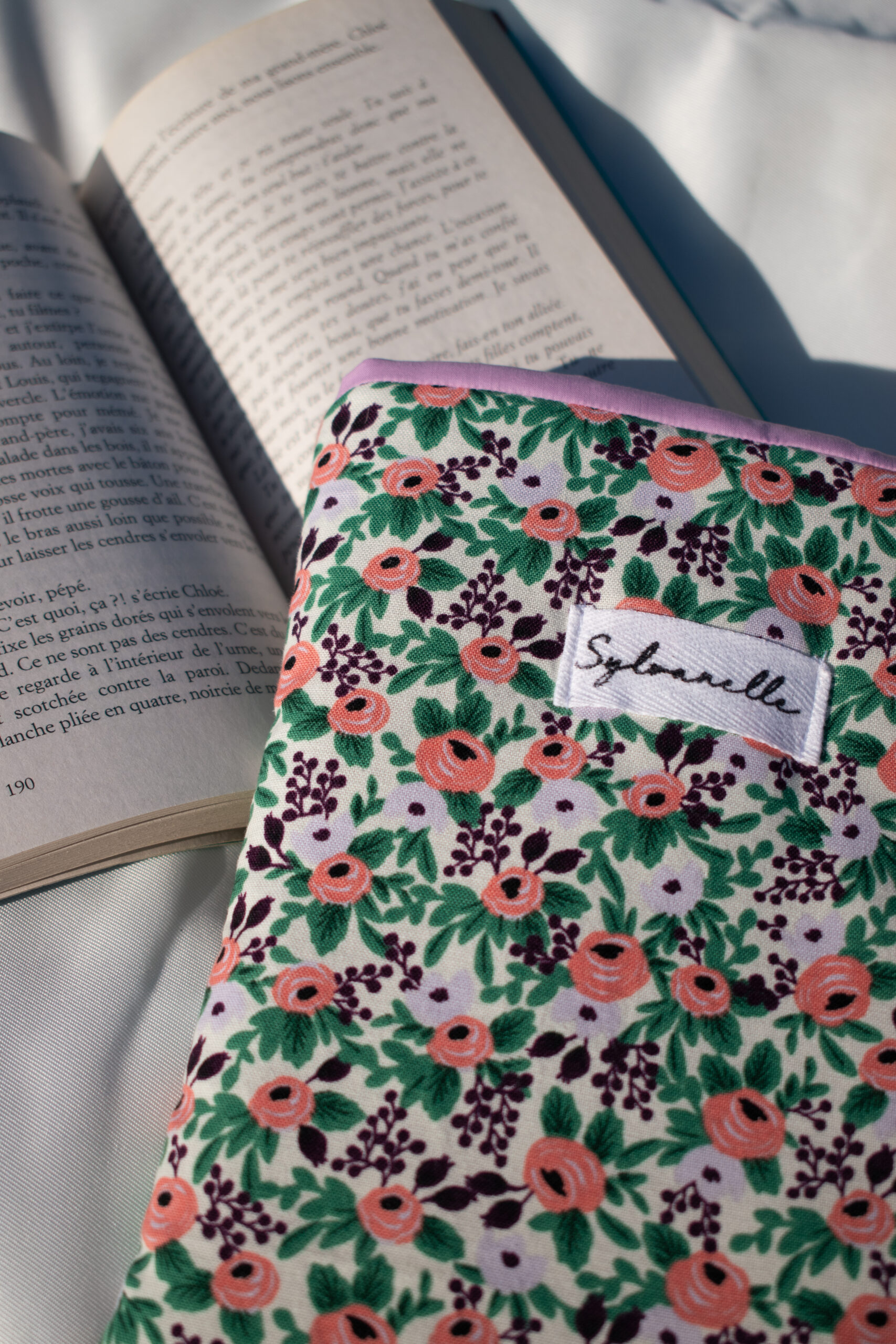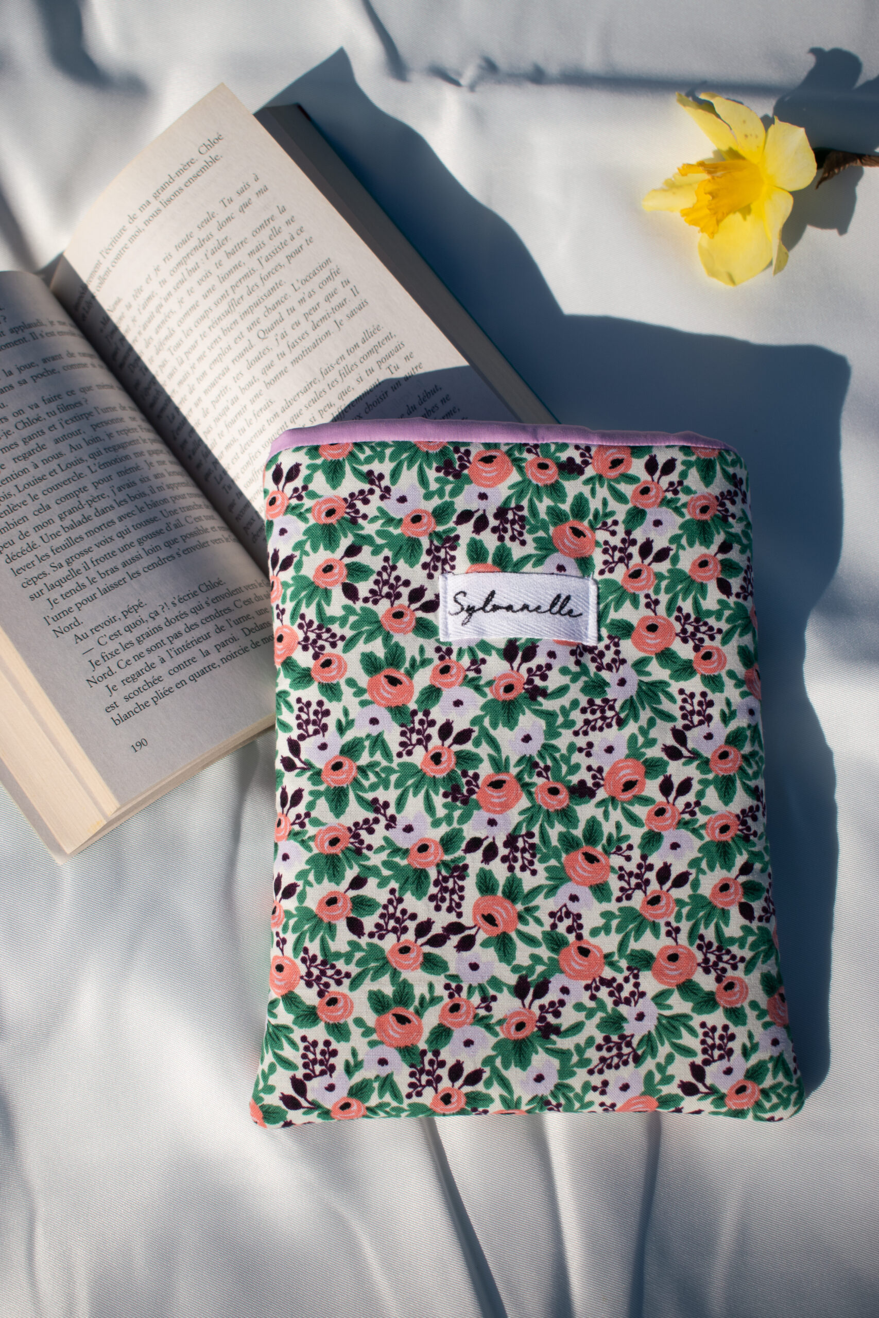 Offrez à vos livres une protection douce et fleurie avec cette housse fabriquée à la main, spécialement pour vous.