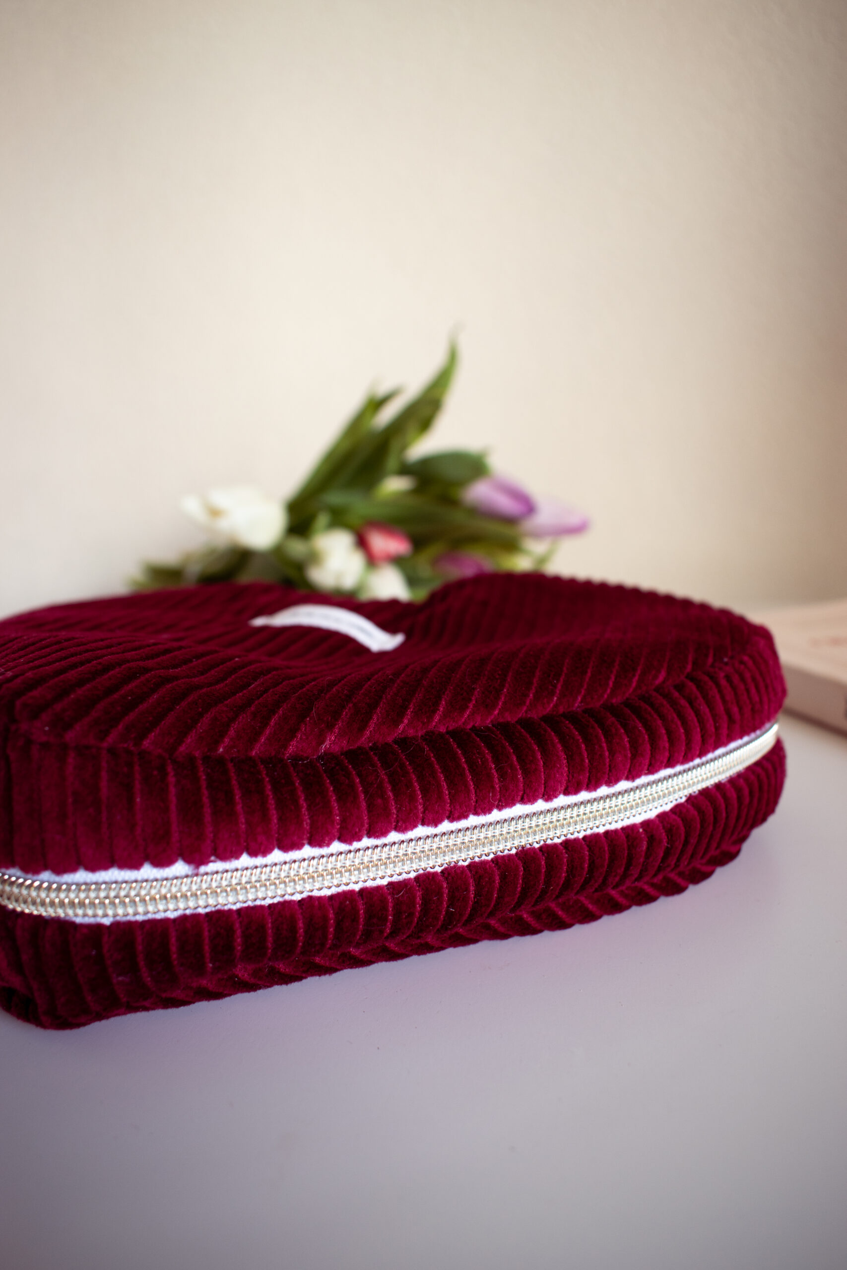Son velours côtelé 100% coton et sa forme originale en font un accessoire à la fois original et élégant.
